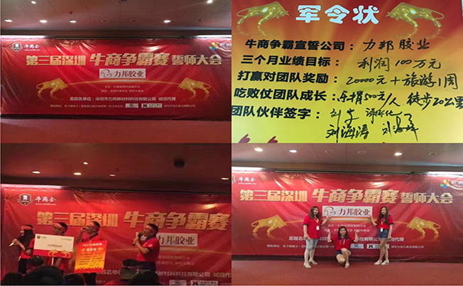 3個(gè)月的點(diǎn)點(diǎn)滴滴誓師大會(huì)目標(biāo)業(yè)績的開始,深圳市力邦新材料科技有限公司目標(biāo)業(yè)績是利潤100萬。感謝牛商會(huì)舉辦這么具備正能量的比賽,這不僅僅是戰(zhàn)隊(duì)間的比賽,企業(yè)間的比賽,還是企業(yè)自己跟自己的比賽!